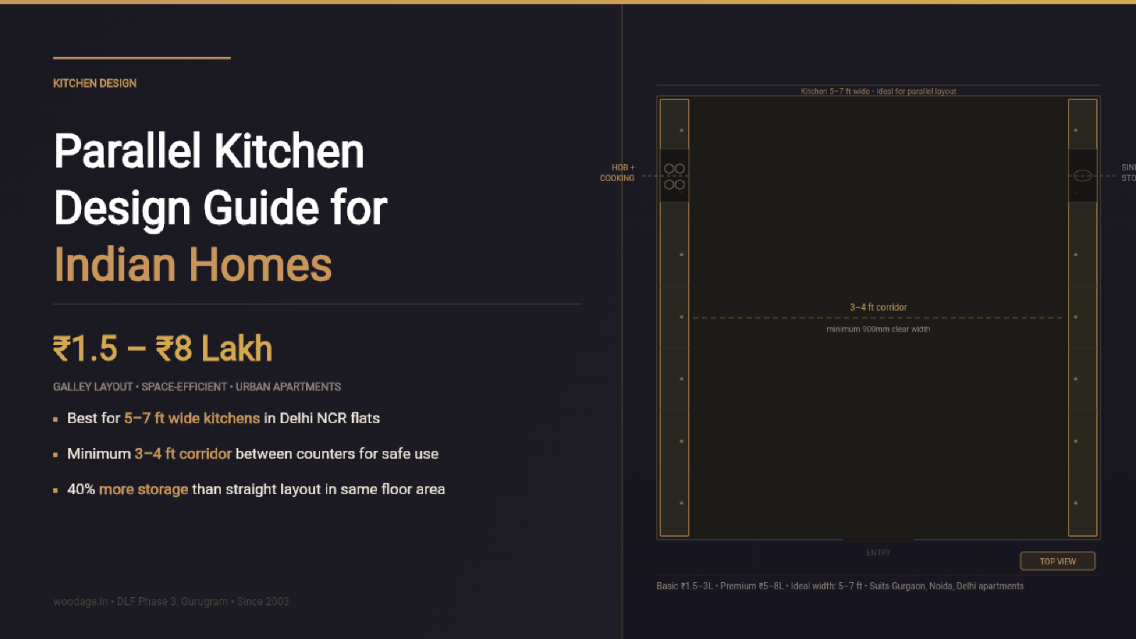 Learn all about parallel modular kitchen designs, their advantages, when to choose them, and tips for customization in Indian homes, especially for Delhi/NCR.
