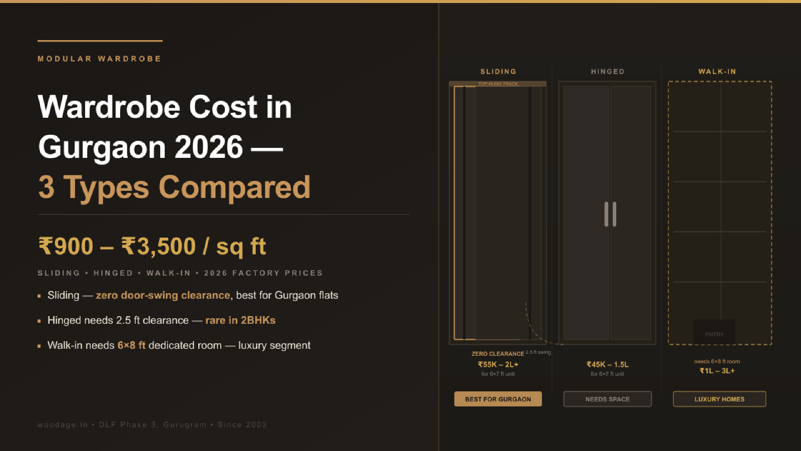 Modular Wardrobe Cost in Gurgaon 2026: Sliding, Hinged and Walk-In Prices Compared